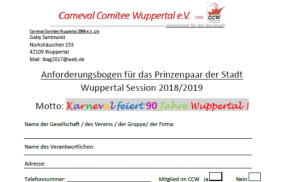 Anforderungsbogen für das Prinzenpaar der Stadt Wuppertal Session 2018/2019