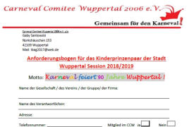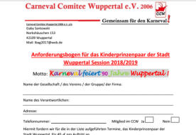 Anforderungsbogen für das Kinderprinzenpaar der Stadt Wuppertal Session 2018/2019