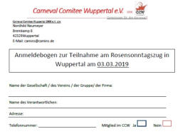 Anmeldebogen zur Teilnahme am Rosensonntagszug am 03.03.2019